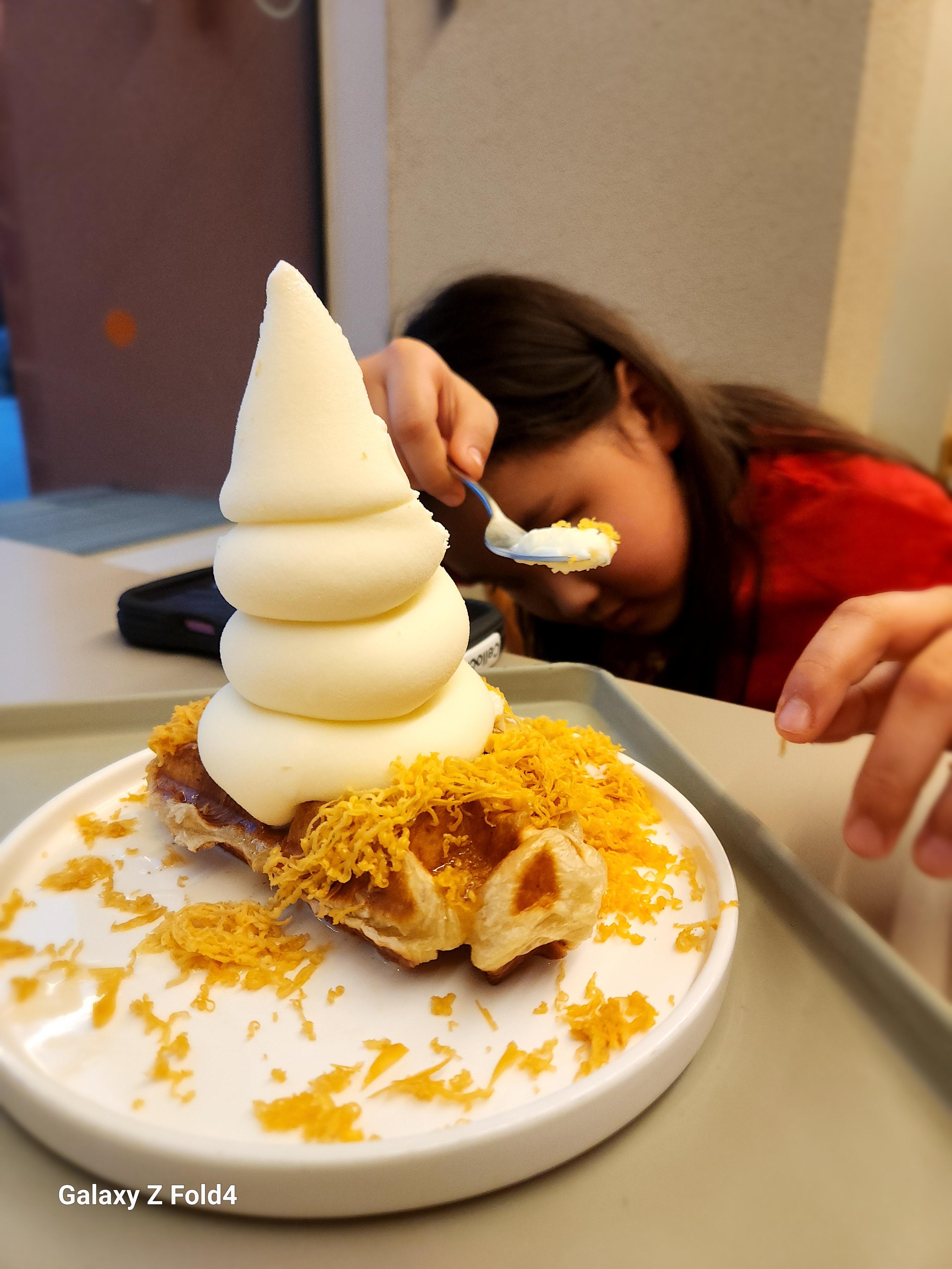 아이스크림은 진~한 맛이 나고, 밑에 깔린 크로플이 바삭하고 따뜻했어요.